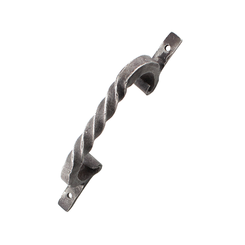 Halbrunder Ziehgriff-Stoßgriff, handgeschmiedet und altverzinkt, tordiert mit geradem Kopf- und Endstück, 18 cm