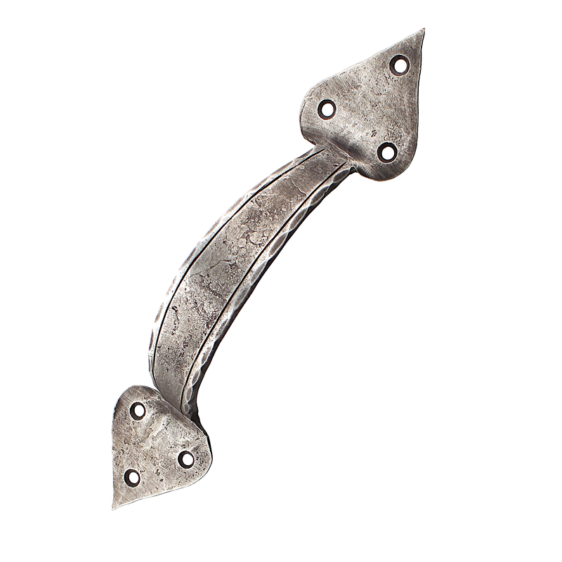 Ziehgriff-Stoßgriff, handgeschmiedet und altverzinkt mit Hammerschlag-Verzierungen, 20 cm