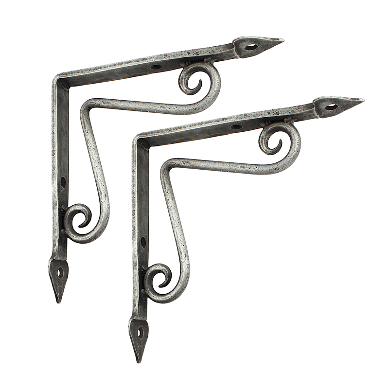 Regalträger antik | 2er Set Regalwinkel, Regalhalter | Wandwinkel aus Eisen frei geschmiedet, altverzinkt, IRF-EW022 , 18 cm Auch wenn um die Wende des 19. zum 20. Jahrhundert Schmiedeeisen in vielen Bereichen durch die Erfindung des Gusseisens stark zurückgedrängt wurde, besitzen handgeschmiedete Beschläge nicht nur in Stilbauten, historischen Gebäuden und der Denkmalpflege hohe Bedeutung. Die frühesten noch erhaltenen Funde von Beschlägen aus Eisen dokumentieren eindrucksvoll nicht nur die Schmiedekunst jener Zeit, sondern auch die besonderen Eigenschaften von handgeschmiedeten Eisenbeschlägen: Hohe Festigkeit, gute Formbarkeit, günstiger Preis und lange Lebensdauer.