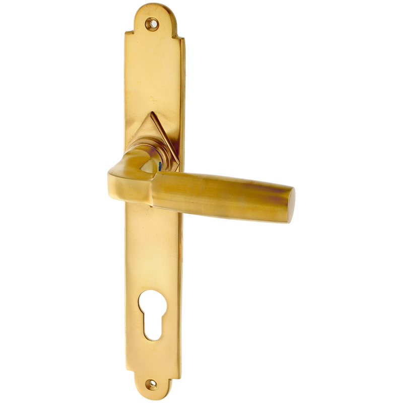 Langschild P1571PZ92 Höhe: 240 mm Abstand von Mitte Drückerloch zu Oberkante: 86 mm Breite: 36 mm Stärke am Schlüsselloch: 3 mm Schlüsselloch: Profilzylinder (PZ) Schlüssellochabstand: 92 mm