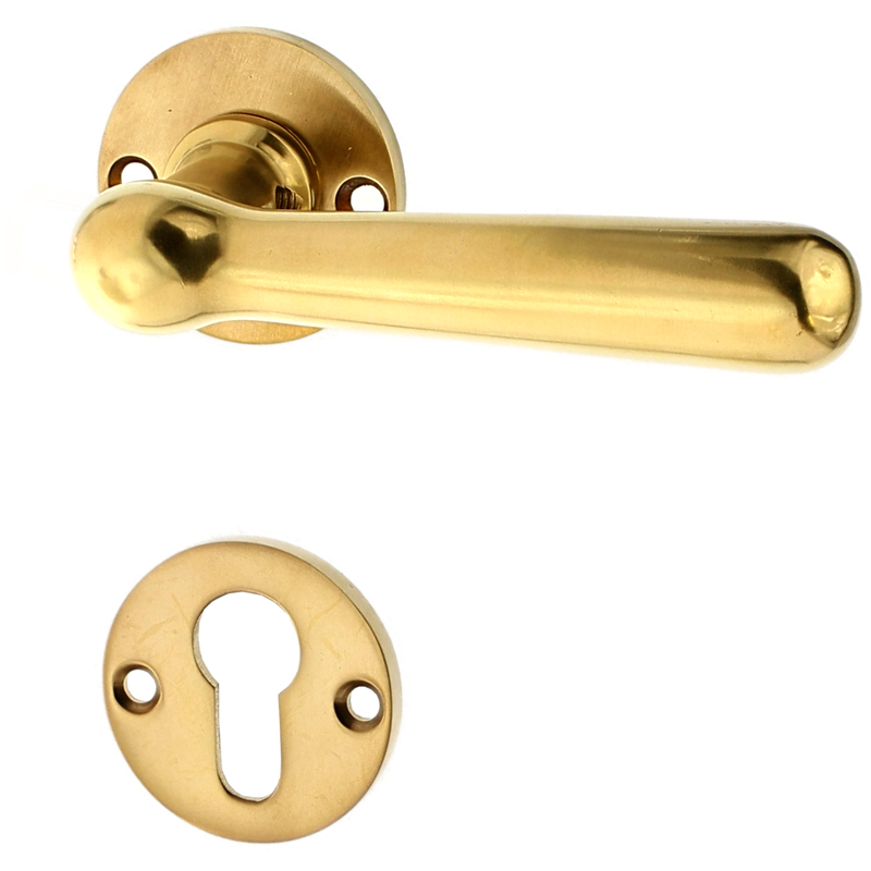 Rosettengarnitur mit PZ-Profilzylinder-Schlüsselloch. Egal, welchen Abstand das Schlüsselloch von der Türklinke hat, diese Garnitur passt in jedem Fall auch an Ihre historische Tür.