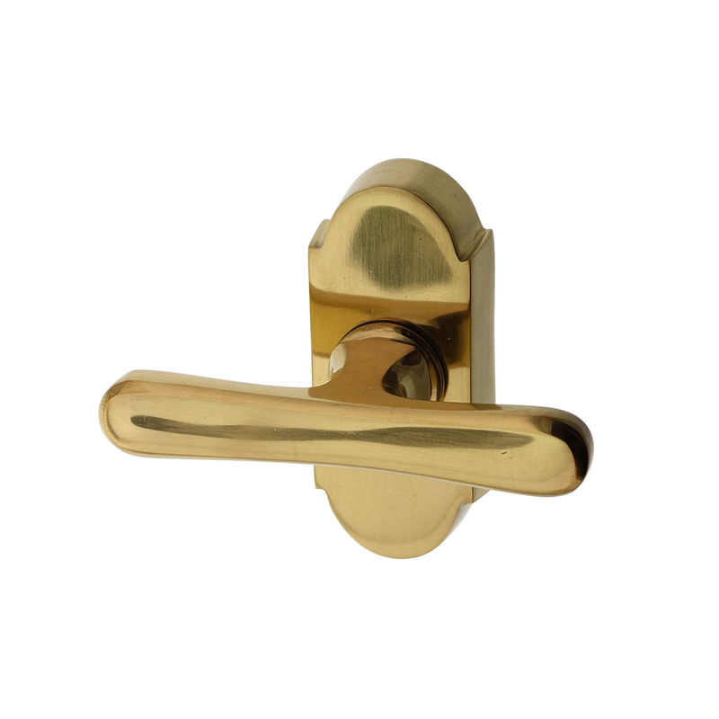 Handgemachter Fenstergriff - Alpenländisch - aus poliertem Messing - Modell Seefeld RR86 - handgefertigt nach geschichtlichem Urtyp