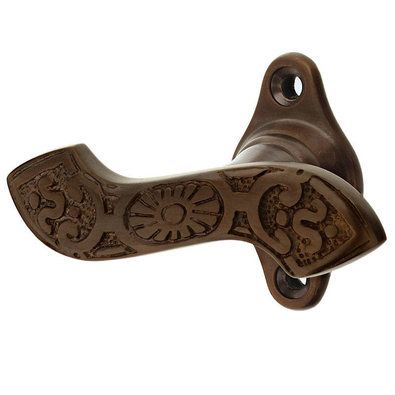 Jugendstil Fenstergriff - geschwungene Form aus dunkel patiniertem Messing - "Oldenburg A" - handgefertigt nach antiker Vorlage