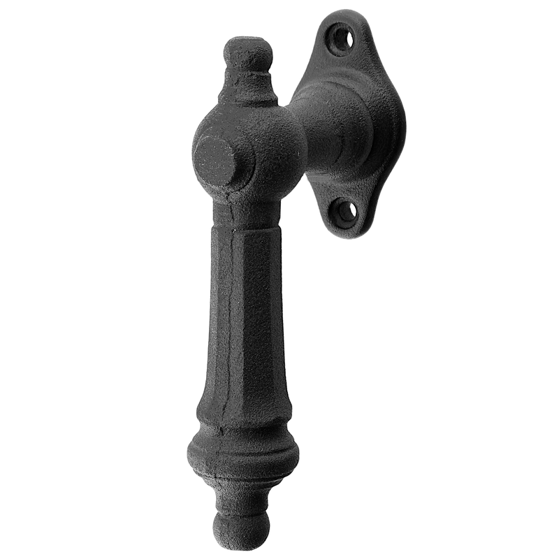 Handgegossener Fenstergriff - kugelförmiger Griffkopf - aus schwarzem Gusseisen - Serie "Sonneberg IRB"