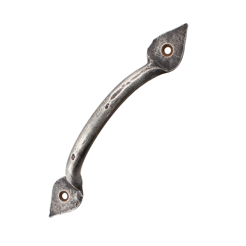 Robuster Ziehgriff-Stoßgriff, handgeschmiedet und altverzinkt, mit frei ausgearbeitetem Kopf- und Endstück, 15 cm