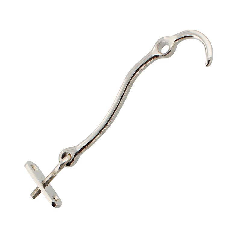 Sturmhaken mit Plattenöse N7875, Länge 130 mm, Messing vernickelt und poliert