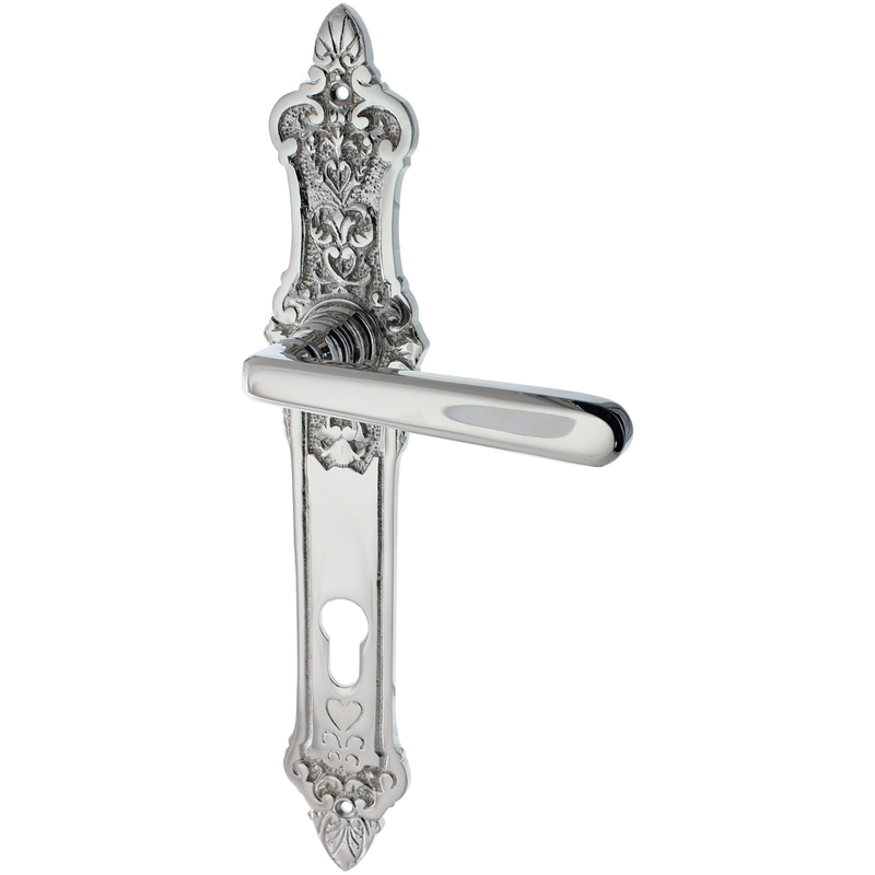 Wohnungstürbeschlag vernickelt, hochglanz poliert aus Messing silber schlanke Form