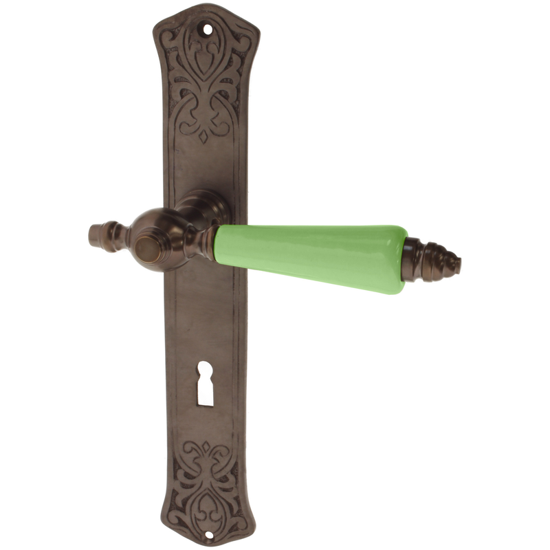 Zimmertürbeschlag Jugendstil dunkel patiniert | verziertes Muster in braun
