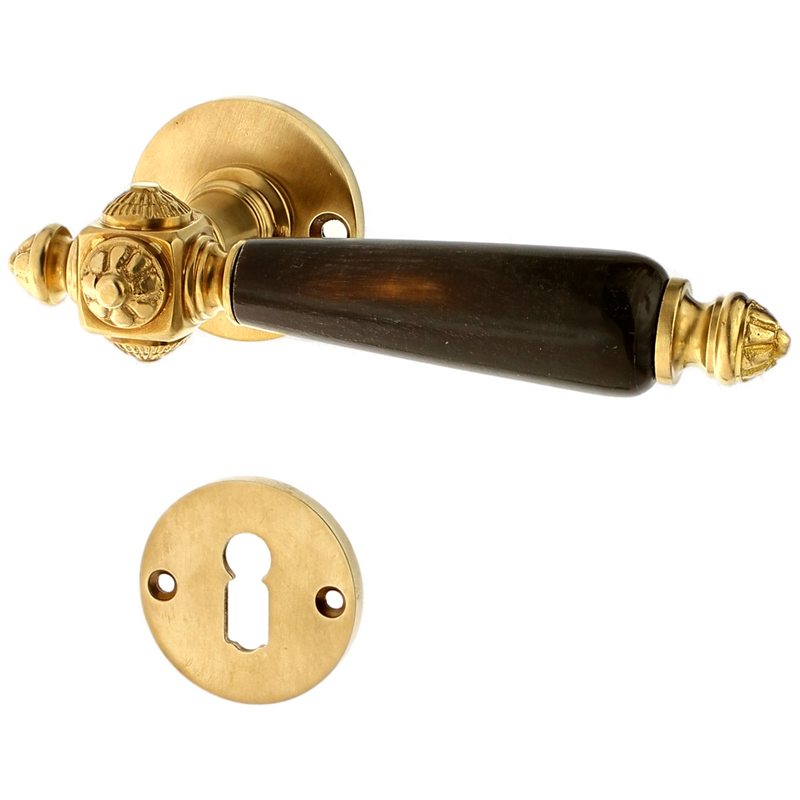 Rosettengarnitur mit Buntbart-Schlüsselloch. Egal, welchen Abstand das Schlüsselloch von der Türklinke hat, diese Garnitur passt in jedem Fall auch an Ihre historische Tür.
