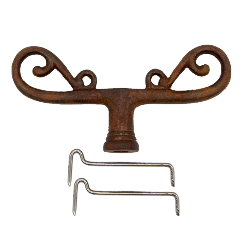 Dieser antike Fensterreiber aus vorgerostetem Gusseisen besteht aus einem zweiseitigem, schwenkbaren Hebel und kann als Fensterriegel für zwei Fensterflügel gleichzeitig verwendet werden.