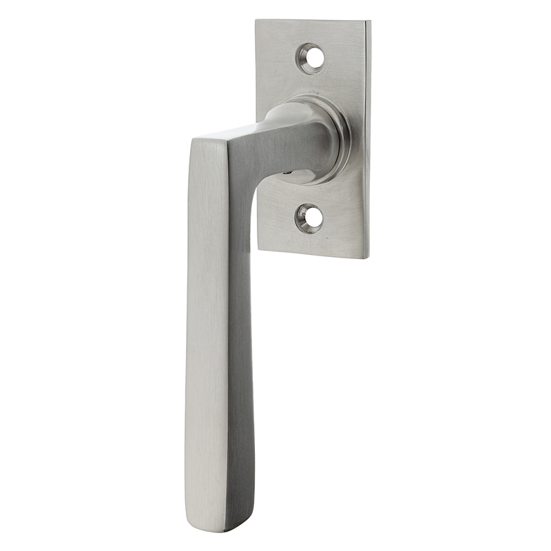 Die klassische, schlichte Linienführung der Fensterolive Eschersbach unterstreicht die Form und Funktion dieser klassischen Halbolive. Das silbrig matte, vernickelte Messing strahlt eine zurückhaltende Eleganz aus.