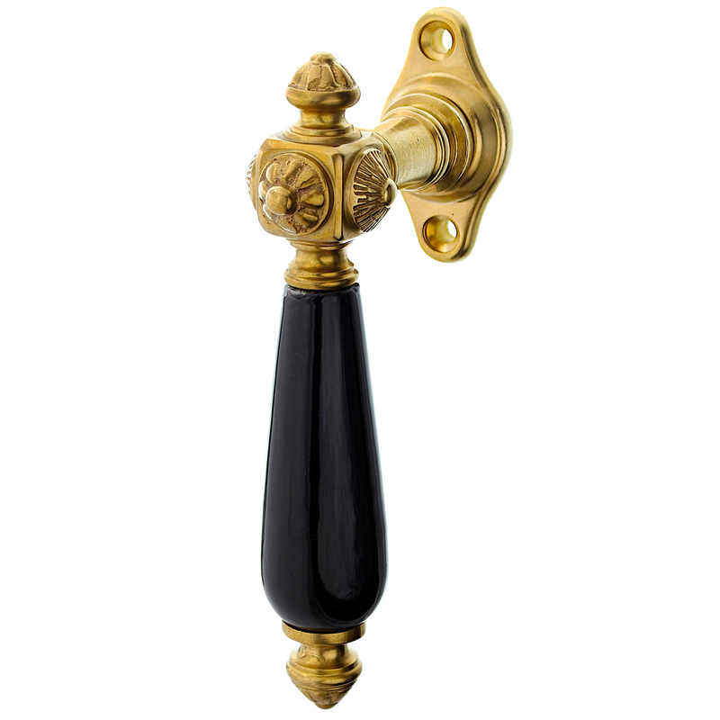 Das Modell "Karlshorst P" ist eine Fensterolive, die den Glanz der Gründerzeit mit der Authentizität handwerklicher Tradition verbindet. Die Kombination aus patiniertem Messing und dem Griff in Wahl aus Holz, Keramik oder Horn spiegelt eine Ära wider, in der individueller Stil und opulente Verzierungen gefeiert wurden.