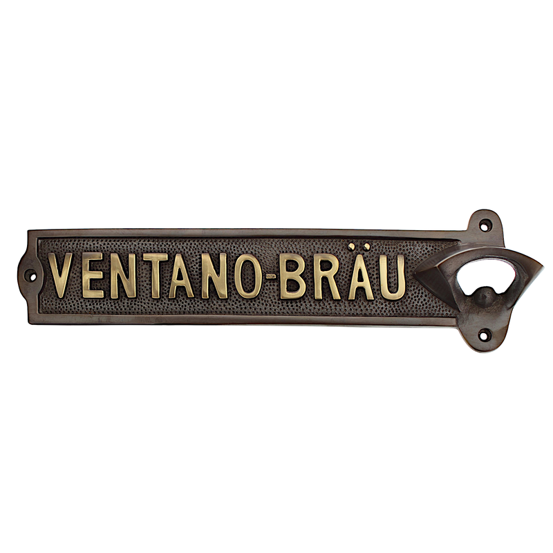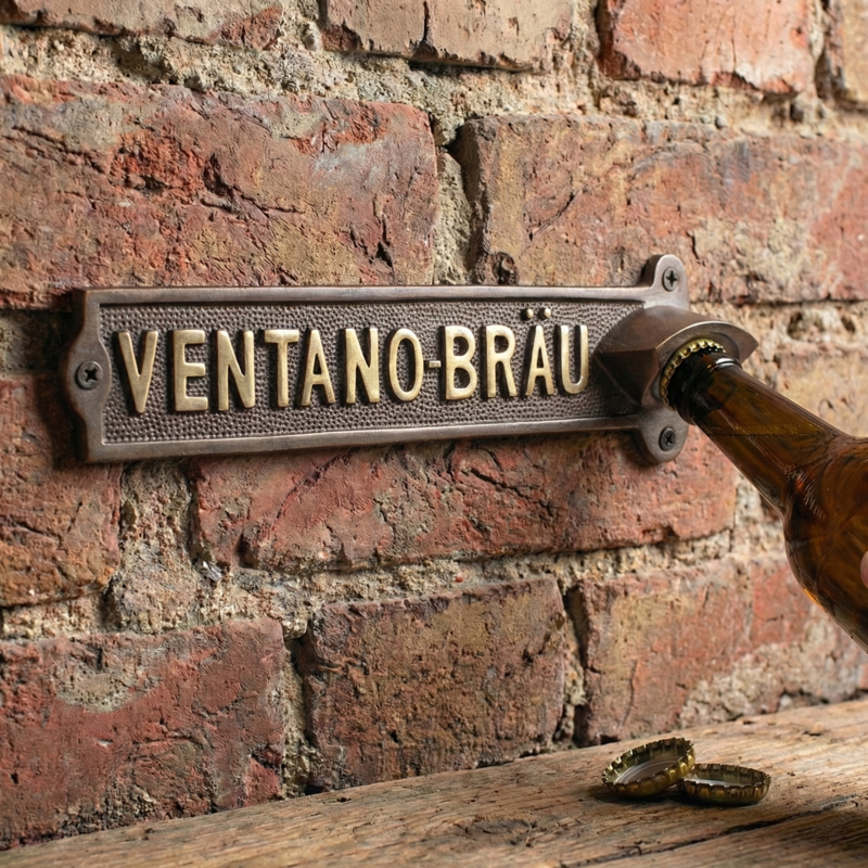 Wenn der Tag geschafft ist und die Flasche bereitsteht, beginnt der Moment der Entspannung. Der Wandflaschenöffner „VENTANO-BRÄU“ aus massivem Messing in antiker Optik verleiht dieser Bierpause einen besonderen Charakter. Die warme, leicht patinierte Oberfläche setzt einen markanten Akzent und fügt sich perfekt in Partykeller, Hausbar oder gemütliche Holzumgebungen ein. Ein Blickfang, der Tradition, Wertigkeit und Genuss sichtbar verbindet.